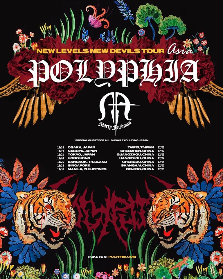 在近年EDM、嘻哈與 Trap 的新浪潮席捲下,Polyphia 用他們新穎多元的編曲與創新的思維,不斷玩出新花樣,讓當代的新興金屬搖滾樂團持續占有重要的一席之地。在2018年底釋出的全新專輯《New Levels New Devils》已於美國時間10月12號正式發行,除了再度與出生於 Deathcore 樂團的速彈英雄第一人 Jason Richardson 共同創作以外,在單曲《Yas》中更與 Fusion Jazz 的同路樂團 Chon 兩大吉他手 Mario Camarena 以及 Erick Hansel 合作,外加近年在網路竄紅的日裔巴西吉他手 Mateus Asato、還有來自日本的新世紀風格美男吉他手 Ichika 與其他許多知名樂手參與了此張專輯;與此同時以新專輯為名的亞洲巡迴更將於12月1號來到台灣進行演出,在長達數年的等待後各位台灣樂迷千萬不能錯過!