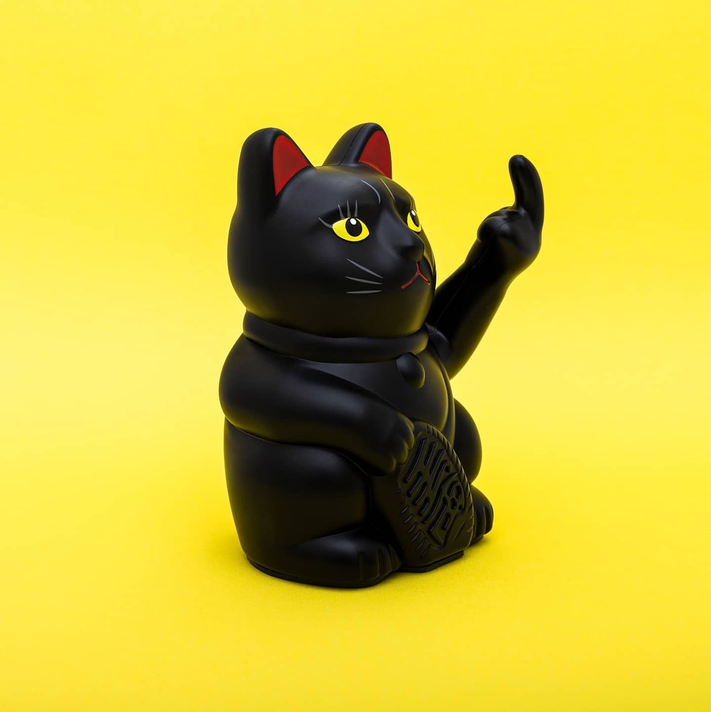 以「I meow what I want.」為出發點,柏林設計品牌 Angry Cat 發行了一系列擺動著中指與搖滾手勢「山羊頭」的招財貓模型,除了黑色喵喵外也有傳統金與夢幻粉色設計;歡迎光臨my縫,Now I'm waving!