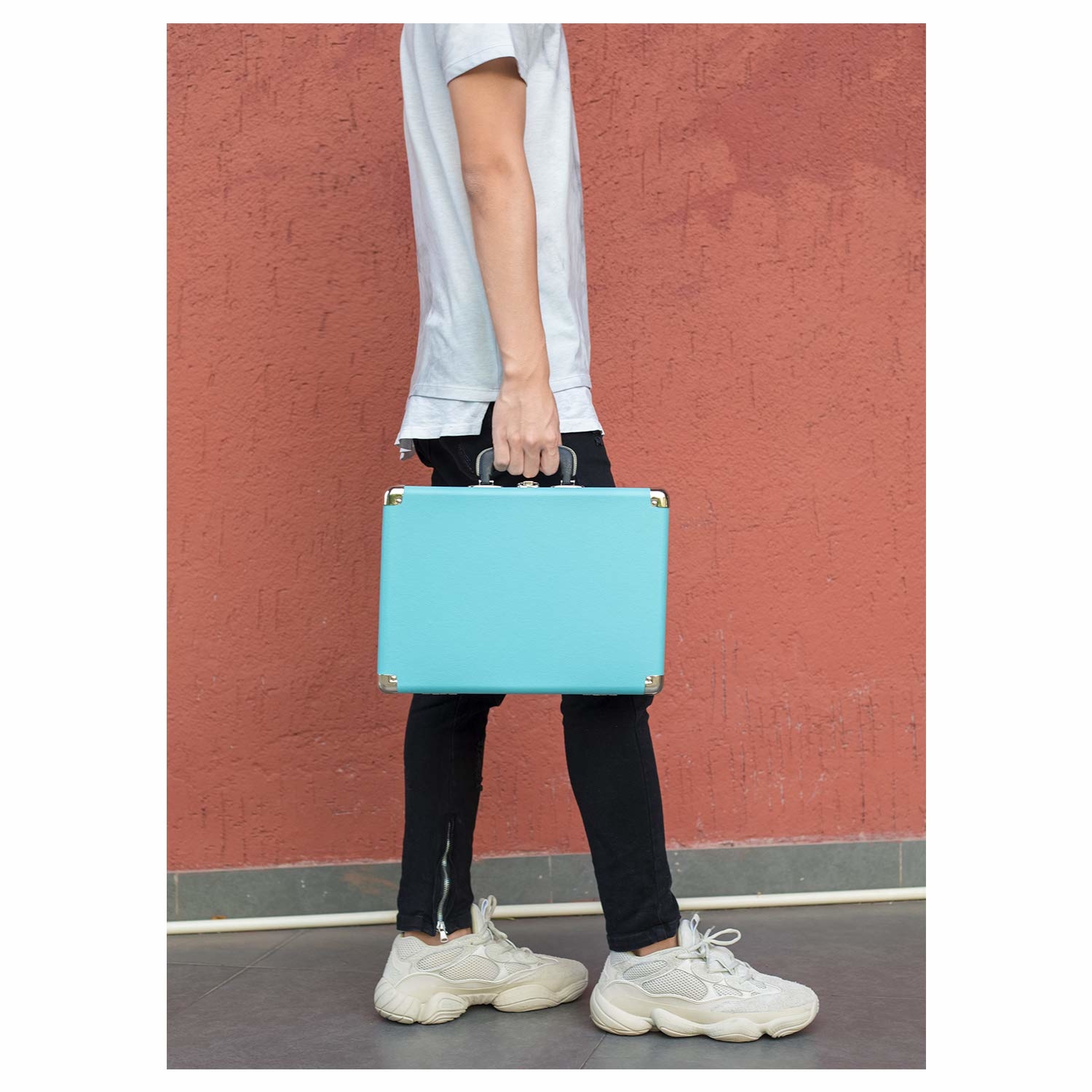 迷你手提箱造型設計不僅超容易帶出門還兼具防身、防塵以及室內擺飾的效果,闔上隨即成為一卡皮箱,堪稱居家旅行必備唱盤。