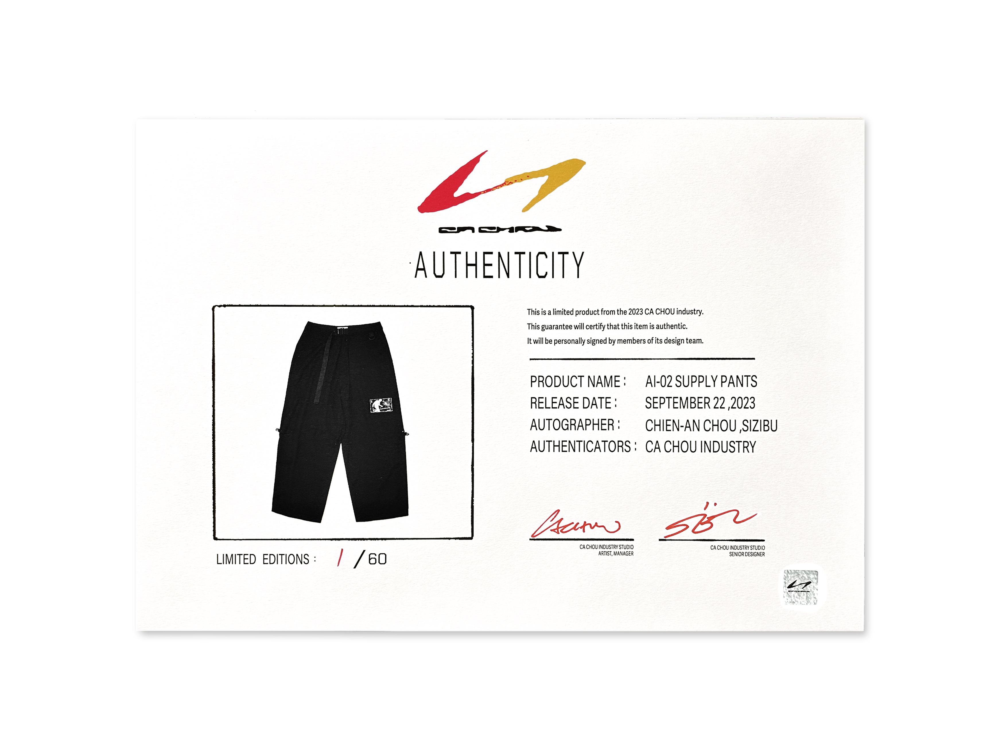 *此次襯衫及褲子為限量 60 件,只要購買即附贈該件的限量編號及設計師的簽名證書,可以當成是你購買了一個附有獨特編號的藝術品