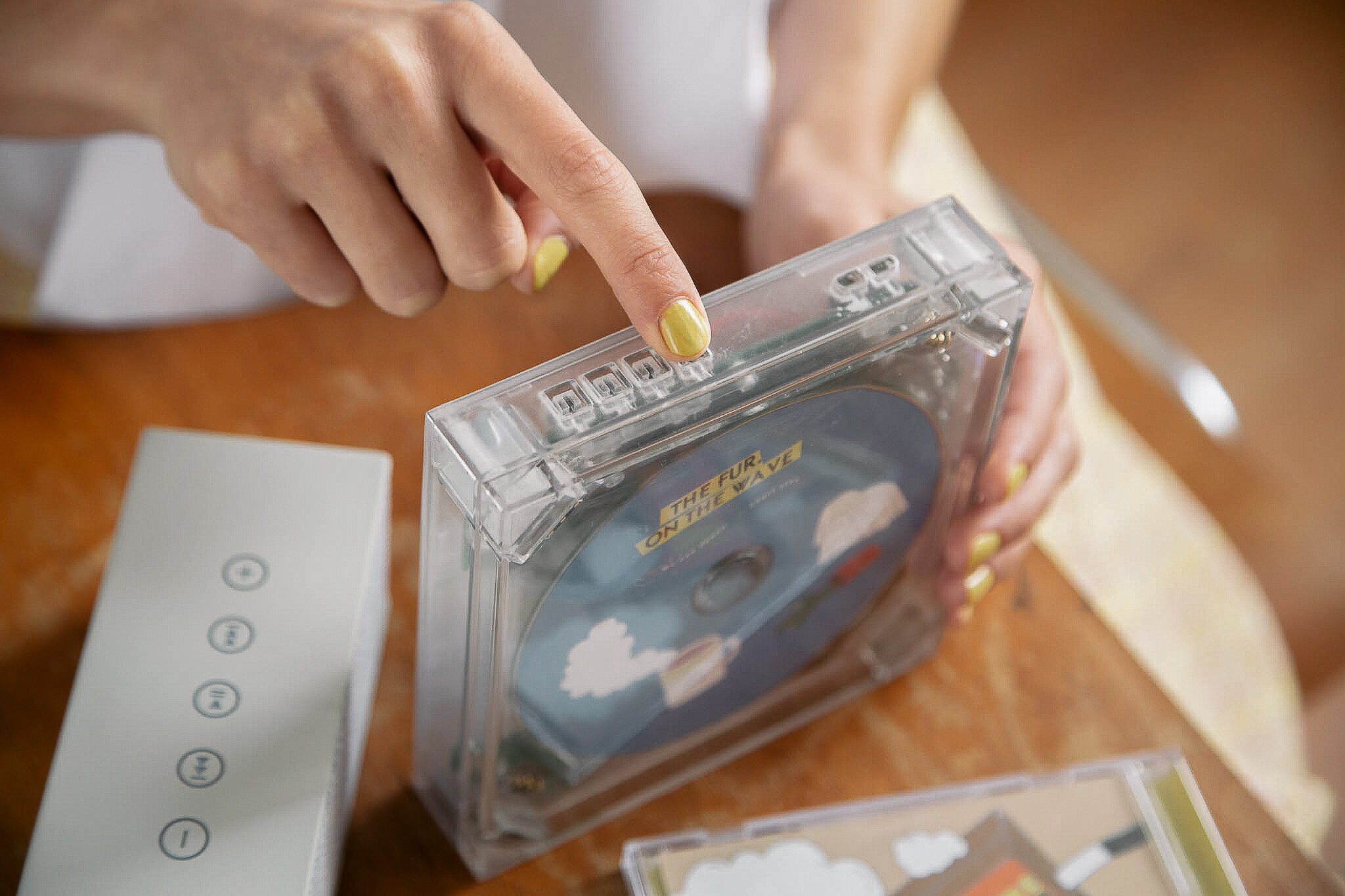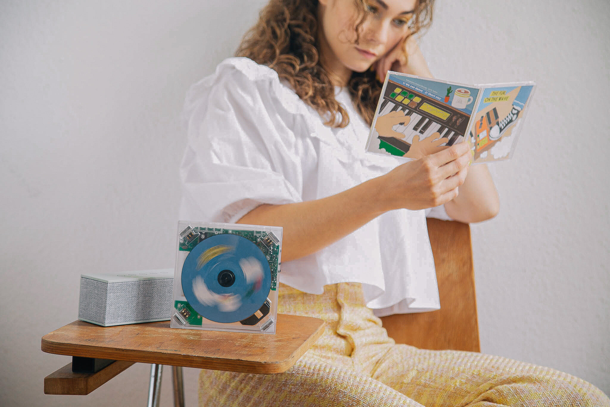 外型靈感則來自經典CD盒,以最簡單的正方形及圓形為基礎。配上90年代初常見的透明塑料外殼,讓各位能可以若隱若現看到隨身聽內部構造,讓人們的眼睛粲然一亮,又可以展示正在播放的CD封面。