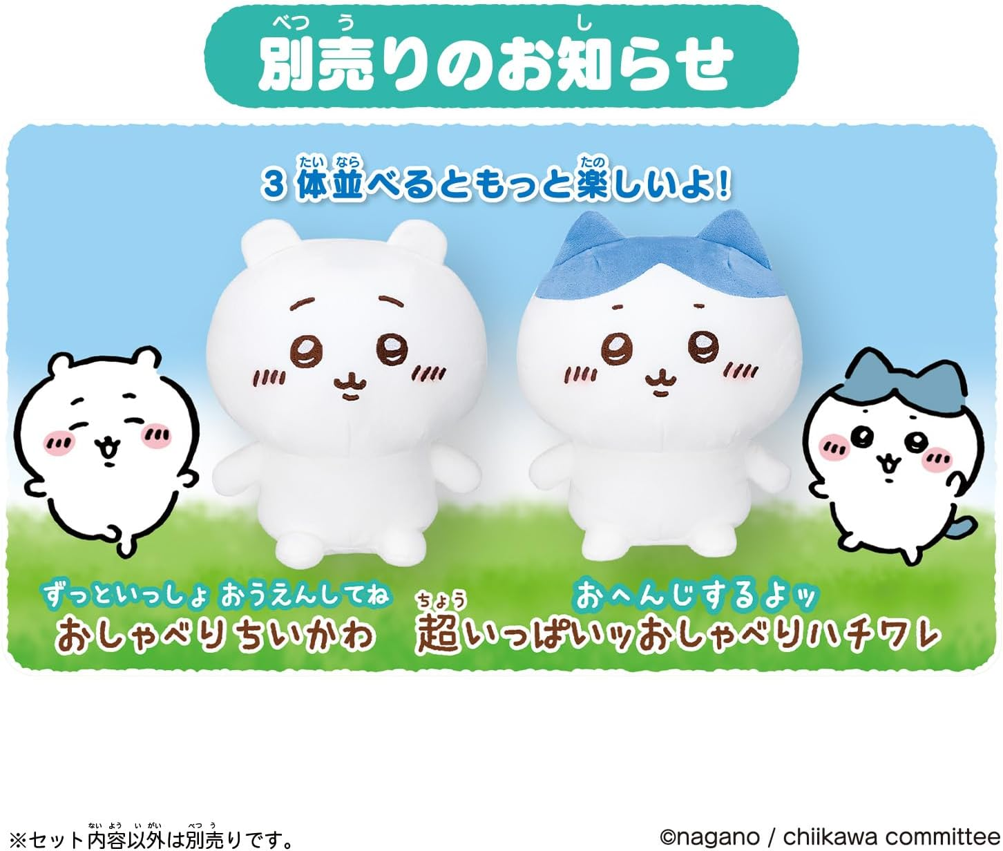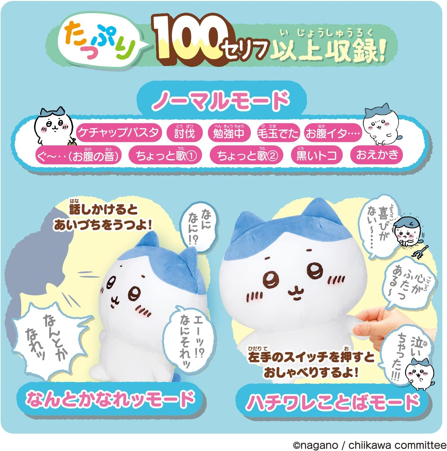 日本官方萬代出品超可愛吉伊卡哇系列發聲娃娃!除了可以進行聊天語音外,還有小道具能與收藏互動,擁有台詞模式 / 互動模式 / 亂叫叫模式,吉伊跟小八貓湊在一起聊天,還可以解鎖除草檢定的劇情唷!