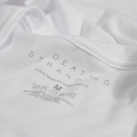Death Stranding 2, On the Beach T-shirt with Ghostmerch print / DS2 Drawbridge premium woven tote bag in black