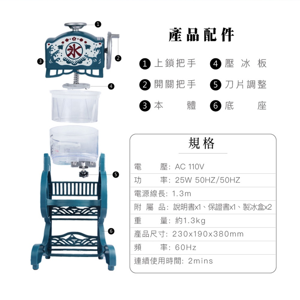 • ✽ 刨冰機請勿連續使用 2 分鐘以上,以免造成馬達過熱故障