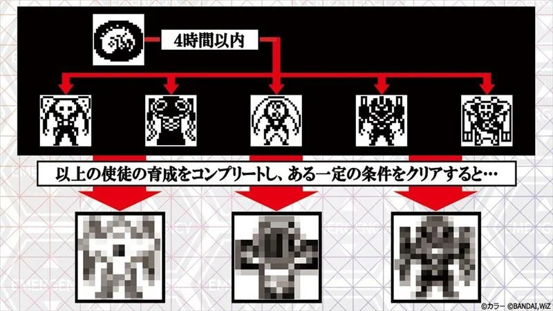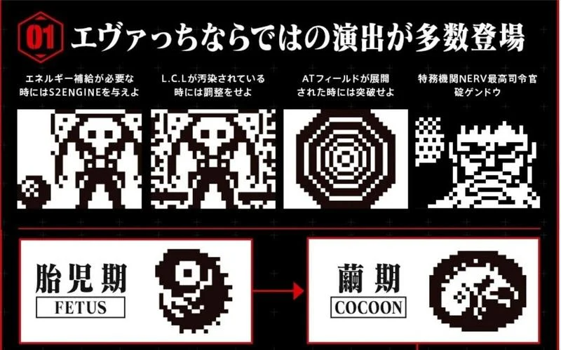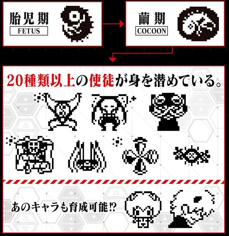 隨著 EVA 電影的上映,Bandai 於 2020 年推出 EVA 為主題的 Tamagotchi 。玩家可以在這「汎用卵型決戦兵器 エヴァっち」中培育出各種使徒,除了可以孵出逾 20 種使徒之外,還可能會成長成凌波零、明日香、碇真嗣、渚薰等人物!從前 Tamagotchi 是跟小寵物一起玩耍、餵食、打掃,到了養育使徒,自然是餵 S2 機關、調整 L.C.L 濃度、以及突破 AT-力場。還會有各種名場景為背景的小遊戲可玩,各位 EVA 迷是不能錯過的!