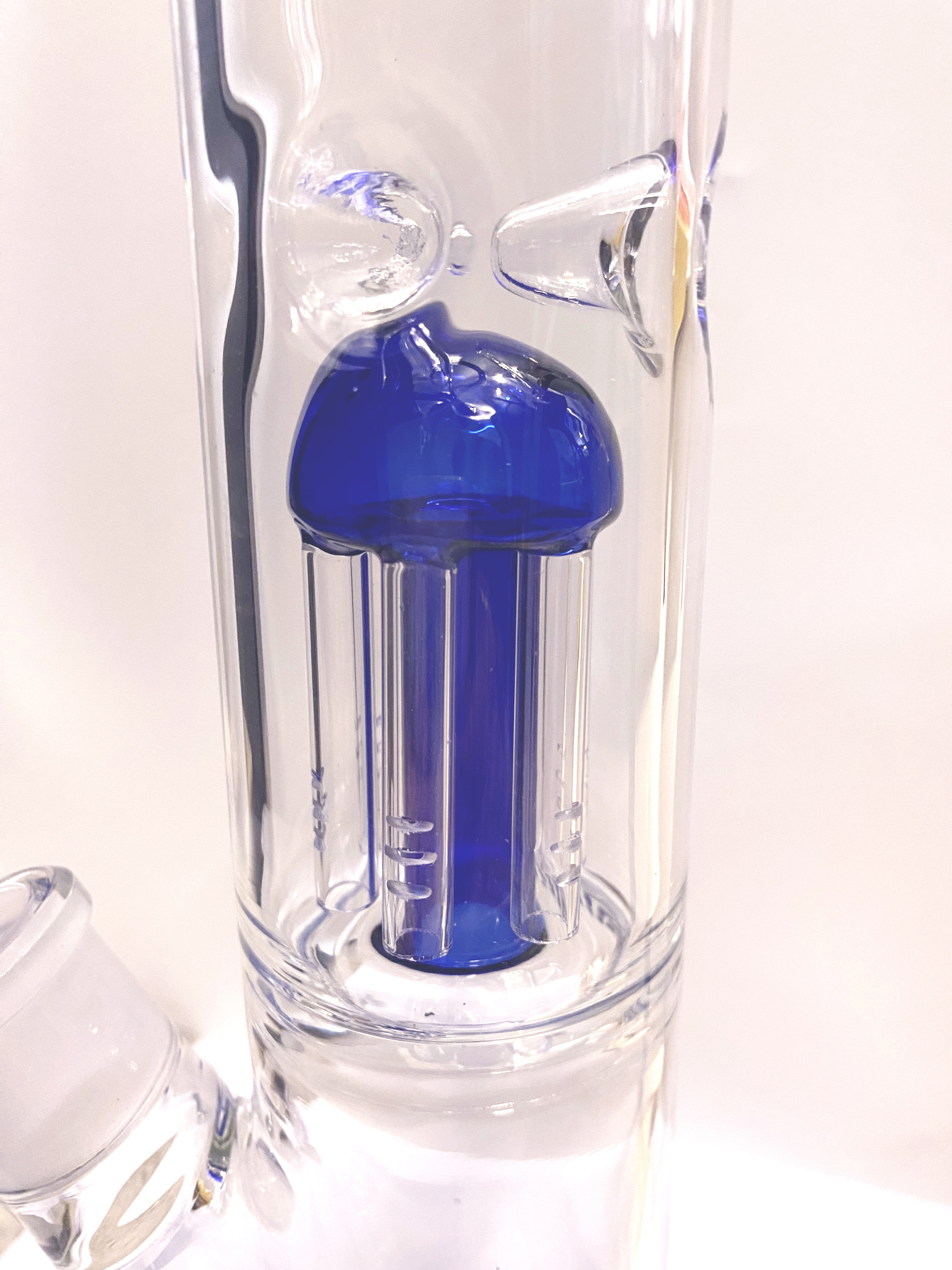 內鑲六蕊玻璃直筒斜口水煙壺 Jellyfish Perc Bong 高 29cm,搭配 14mm 連接管與鍋頭組,完美平衡過濾與順暢度。內置 六蕊分流濾芯(Jellyfish Perc),能夠有效分解煙霧,提高水過濾效果,使每一口吸入都更為絲滑、純淨。直筒式設計 加上 斜口吸嘴,提供極佳的氣流動力與舒適握感,讓你輕鬆享受濃郁順滑的煙霧體驗。耐用高硼矽玻璃材質,簡潔透明,易於清潔且經久耐用。無論是日常使用還是收藏擺設,這款水煙壺都是高品味玩家的理想之選。