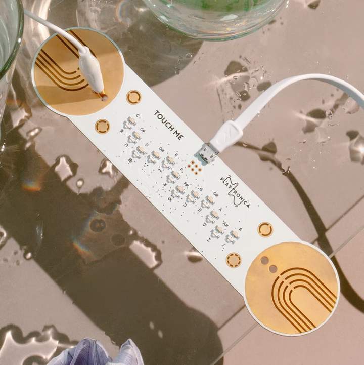 使用 TouchMe 將人類的皮膚,水或花朵變成樂器。隨著觸摸區域和強度的變化,音符也隨之變化。使用在線合成器選擇任何聲音。容易上手!您需要一台PC,平板電腦或智能手機,TouchMe以及任何可以導電的物體。該套件包括一個TouchMe MIDI控制器,USB電纜,2個鱷魚夾,一套貼紙和一個用於存放的信封。