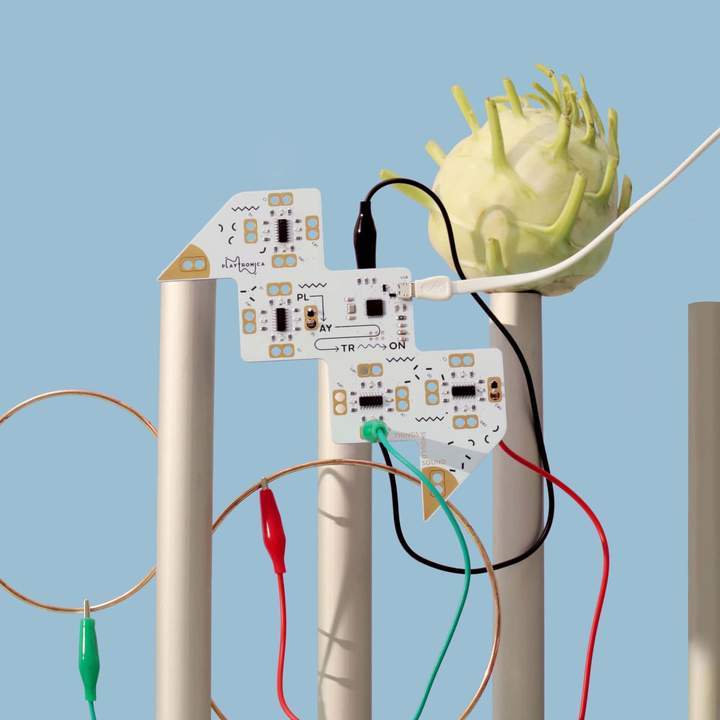 用 Playtron 在水果上彈奏,就像在鋼琴鍵盤上彈奏一樣。連接多達16個對象,使用在線合成器為每個對象選擇任何聲音,並儘享樂趣!每個對象的音符都是穩定的,不會隨觸摸強度的變化而變化。容易上手!您需要一台PC,平板電腦或智能手機,Playtron以及最多16個可以導電的物體。該套件包括一個Playtron MIDI控制器,USB電纜,16個鱷魚夾,一套貼紙和一個用於存放的信封。