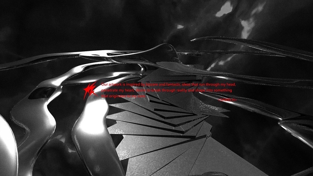 —「於獵奇資訊洪流中擺盪,任由包羅萬象的擬態蔓延身心直至意識邊緣;隨性的沾染、創作撕裂寂靜裏世界中的核心帶來永恆的質變、融合、分裂,最終衍生出既非物亦非人的意識且無止盡得渴望突破虛幻所帶來的無形袈裟。」