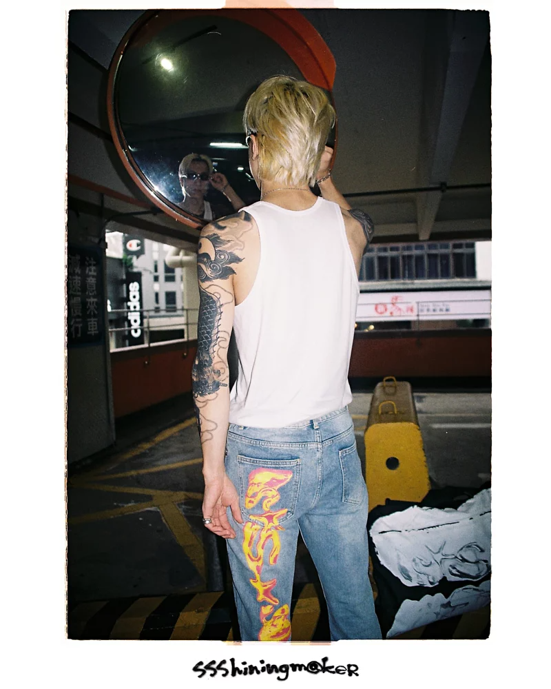 曾數度在外奔波擺攤,前日首度 Pop-up Win 53 場域,本回新番與台灣塗鴉小生 @maddog.made 聯動,帶動噴漆式合作 HEAVENHELL 秋冬系列;取汲街頭極惡精神、筆刷美式圖樣靈感,回應設計師潘創立初衷:「當初單純只是想任性出些自己喜歡的圖案 T-Shirt;想讓大家也感覺到當初我買到喜歡的衣服想天天穿的感覺。」