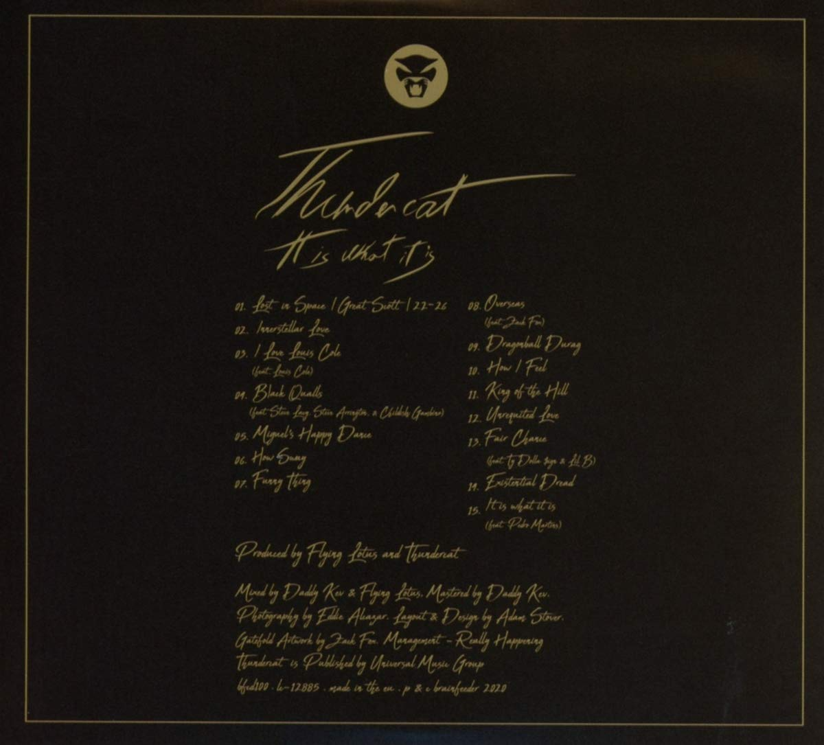 現年 37 歲的洛杉磯全能唱作人 Thundercat 起初從金屬樂團發跡,期間橫跨樂團、電子樂並唱起嘻哈 R&B,也以樂手身分參與 Kendrick Lamar、Flying Lotus 與 Mac Miller 等多張專輯錄製,身兼 Flying Lotus 的多年 Homie 與其廠牌 Brainfeeder 旗下要角,還恰如其名的是一位職業級喵奴。講了這麼多,在在顯示具有豐富資歷與深度,且符合大眾口味的 Thundercat 在 2020 年以《It Is What It Is》奪下最佳前衛 R&B 專輯一點都不讓人意外。